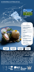 Réservation https://www.plateaudecaux-normandie-tourisme.fr/bouger/reservez-vos-sorties/les-soirees-bleues/