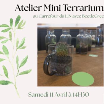 Prochainement Atelier Carrefour du Lin Venez fabriquer un mini terrarium avec l'artiste BeetleGreens (ouvert aux enfants accompagnés de + de 8 ans / durée d'une heure ... 11 avril Atelier Mini Terrariums