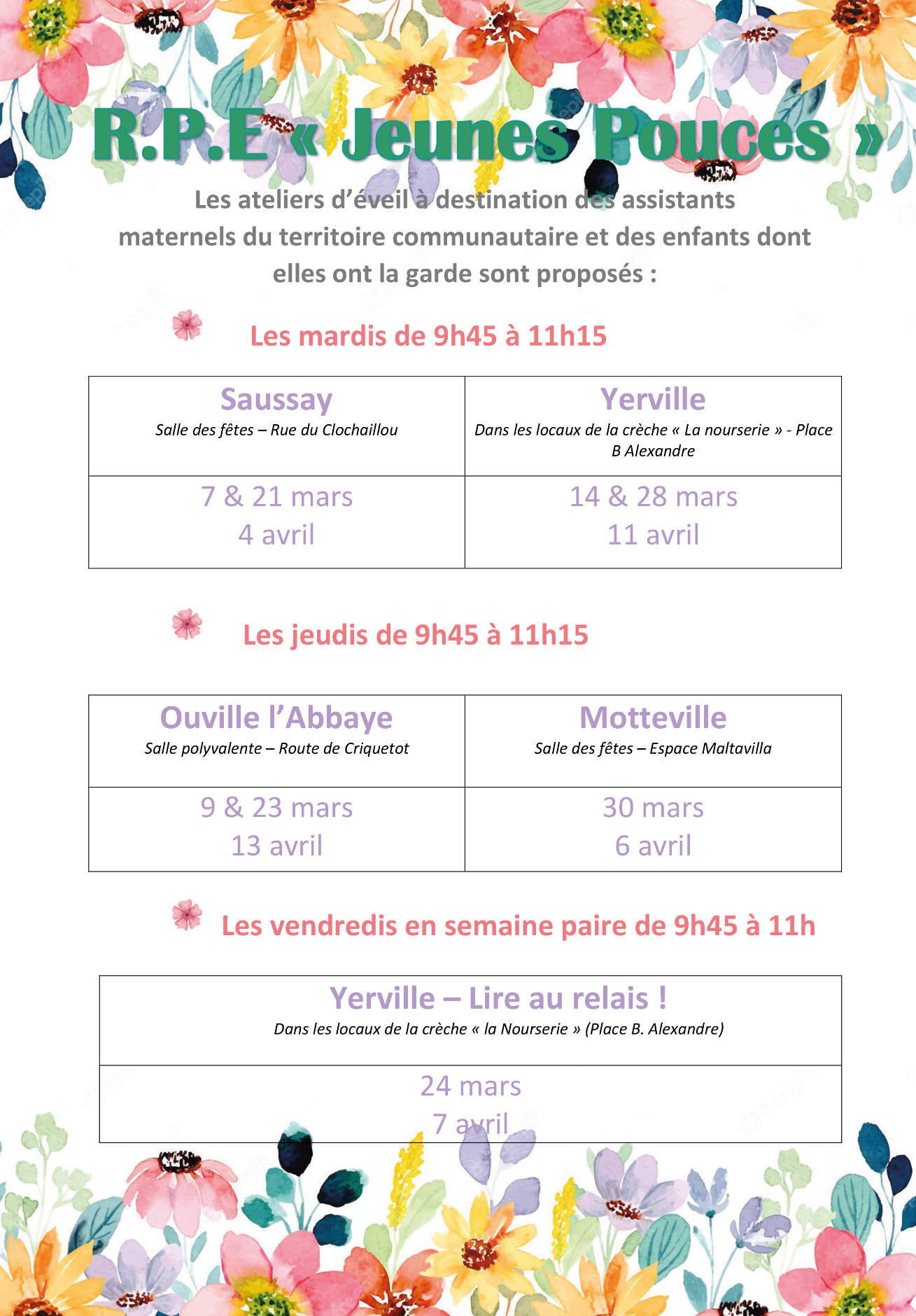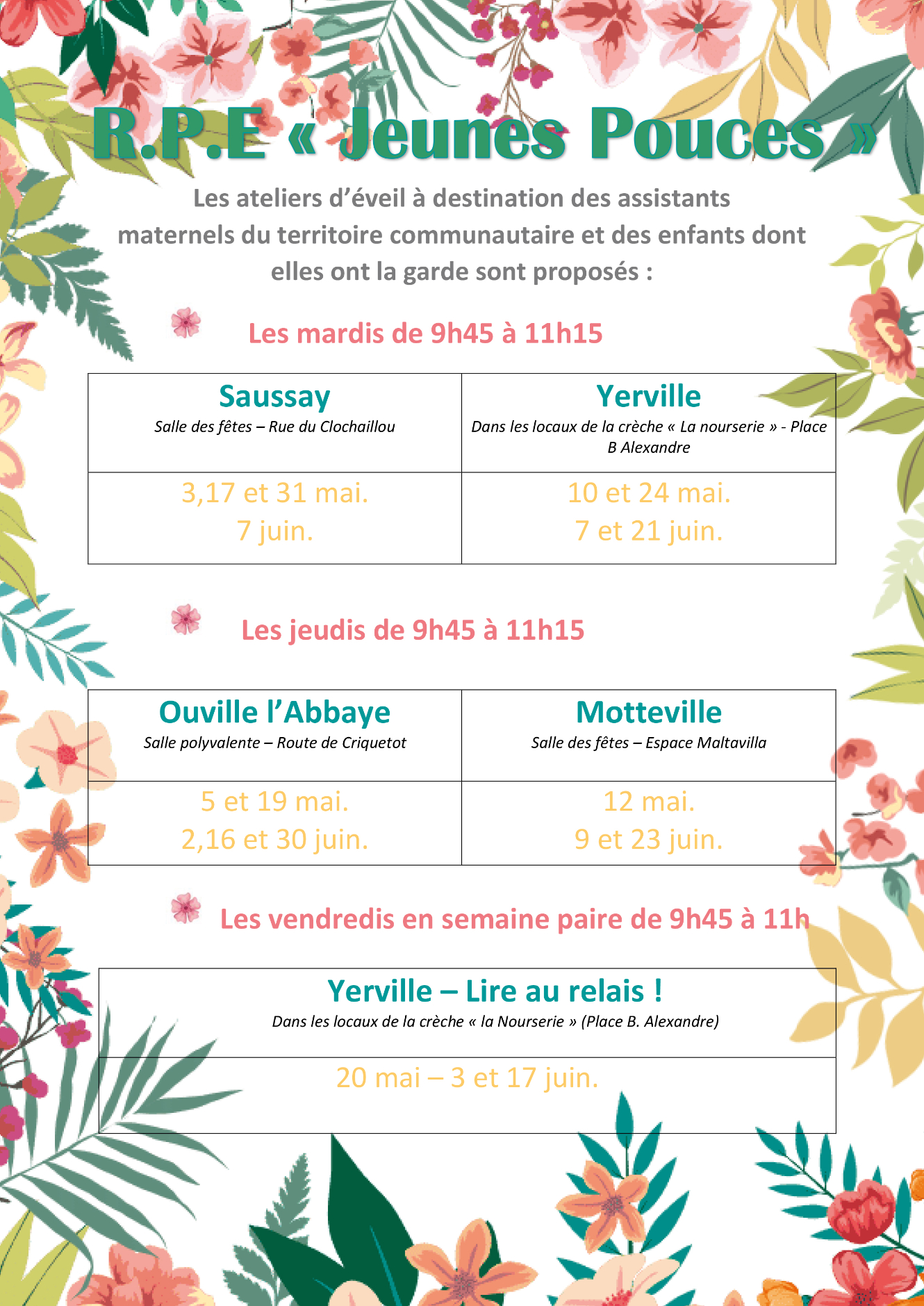 Permanences du RPE “Jeunes Pouces” à YERVILLE :