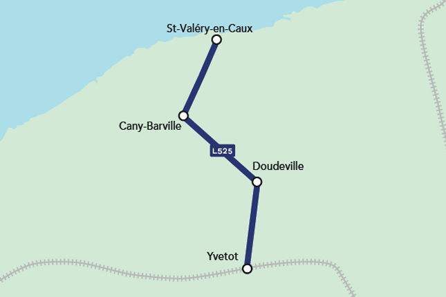 La ligne 525 entre Saint-Valéry-en-Caux et Yvetot dessert également les communes de Néville, Crasville-la-Mallet, Ocqueville, Cany-Barville, Saint-Vaast-Dieppedalle, Doudeville, Yvecrique et Grémonville.