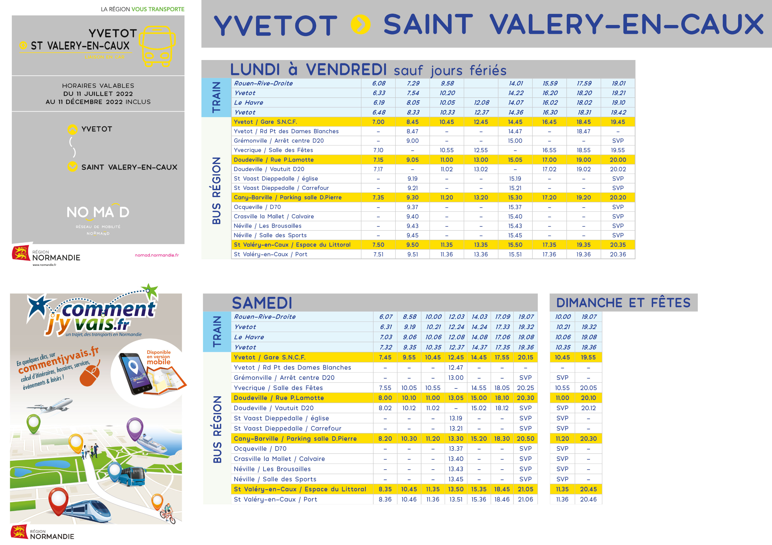 Elle assure une correspondance en gare d’Yvetot avec le réseau Nomad Train pour Rouen ou Le Havre.